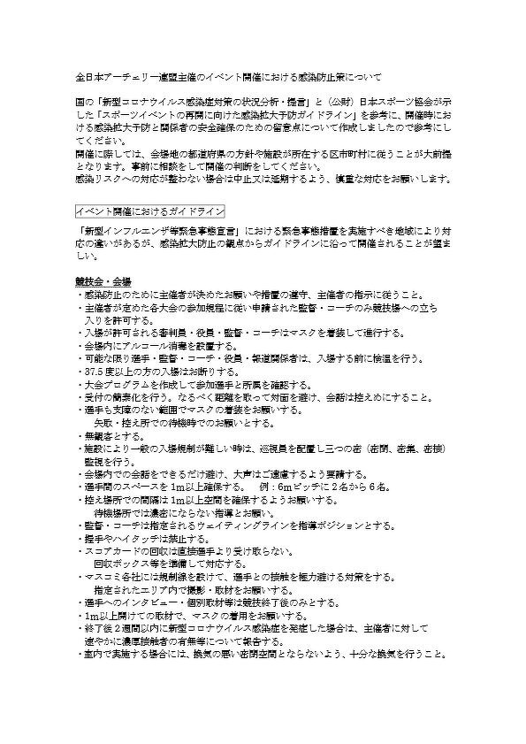 大会時等感染対策(全日本アーチェリー連盟)
