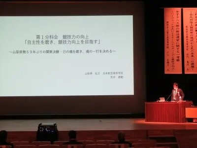 R4.1.13~14 青森県青森市 「創ろう!ワールドワイドな運動部活動~縄文のまほろばから世界を見つめて~」 日本航空高校 荒木優範先生に山梨県代表として、発表をしていただきました。